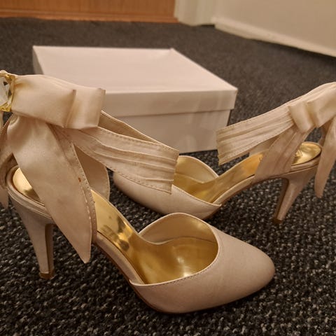 Klackskor i rött skinn storlek 40. Skorna har en slät yta och en medelhög klack.