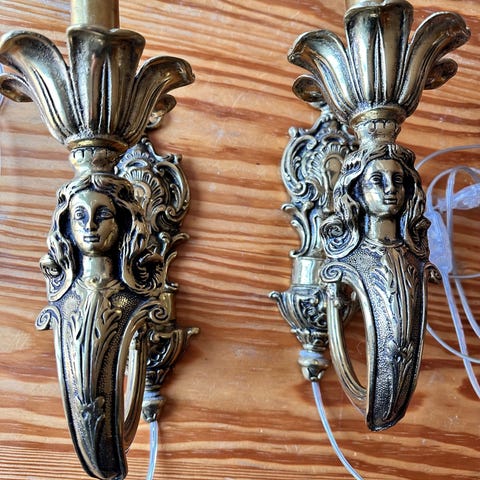 2 Dubbla lampetter i gjuten mässing, 1950-tal.