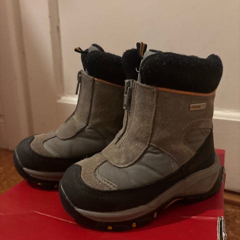Reima barnskor för unisex, storlek 22, i blått material. Skorna har kardborreband för enkel på- och avtagning och är designade för små barns fötter.