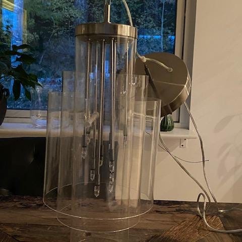Stora Taklampa med Spegel och 3D dekorationer i klart glas . Detta är den stora modellen , vilket ger en dekorativ effekt. Spegeln har en rektangulär form och är avsedd för inomhusbruk.