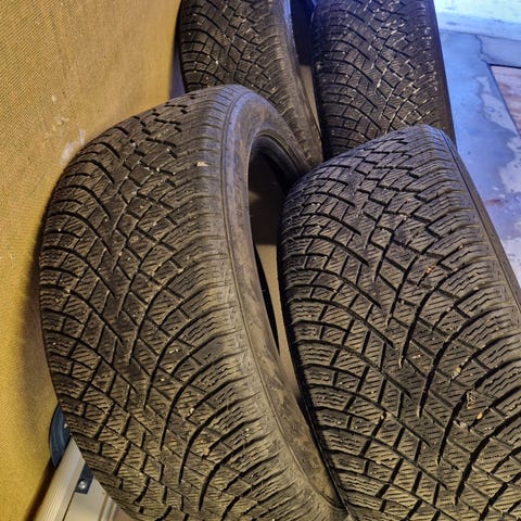 Satt dubbdäck på bilen och säljer friktionsdäcken som köptes nya december 2022. 4st Continental VikingContact 7 i storlek 255/45/R19 med 5mm+ mönsterdjup på alla däck. Suttit på Tesla Model Y.