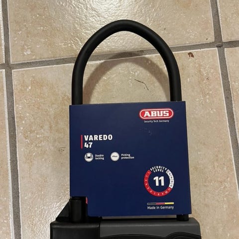 Helt oanvänt larm Abus Alarmbox 2.0 +12 Mm/100 Cm Wire. Inköpt för att användas till barnvagn.
