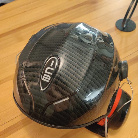 Iscaro Solar X skoter och paramotorhjälm med visir. Peltor kåpor, WS Alert XP headset