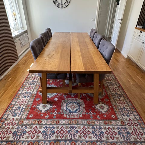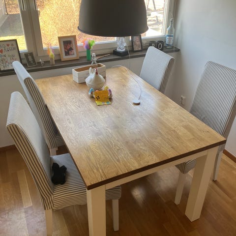 Matbord med iläggsskiva och 6 stolar (Matgupp