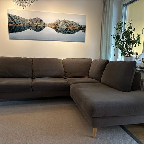 Säljer min Madison-soffa från Mio, modell 3-sits med divan höger, i det populära tyget King grey-beige.