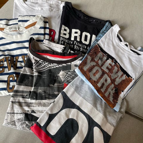 3 stycken linnen. De mörkblå linnet är i storlek 110/116. De båda randiga är i storlek 122/128