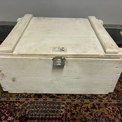 Kistan har ett lock som kan öppnas och ett lås för att säkra innehållet. Passar för allmän förvaring av olika föremål.