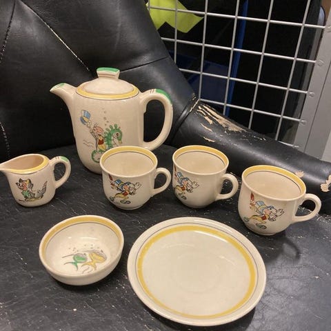 Dekorativt blå-vitt mönster som ser kinesiskt ut som jag uppfattar det. Inga skador på denna lilla servis.