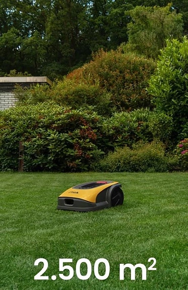 Klipper helautomatiskt ytor på upp till 500 m². Tystgående klippning med en ljudnivå på 60 dB(A)