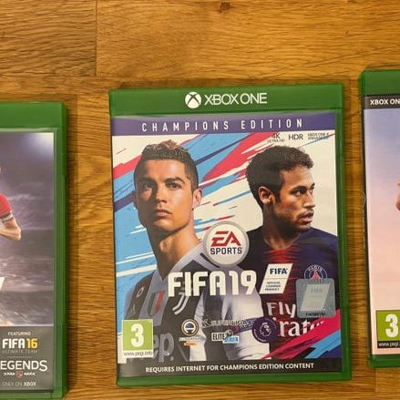 EA Sports FIFA 17, FIFA 18 och FIFA 19 är fotbollsspel för Xbox One. Spelen innehåller olika lag och spellägen och är avsedda för fotbollsintresserade spelare.