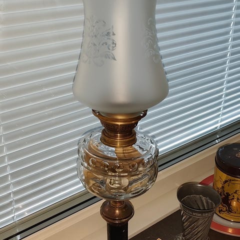 Majolika lampa i gott skick.