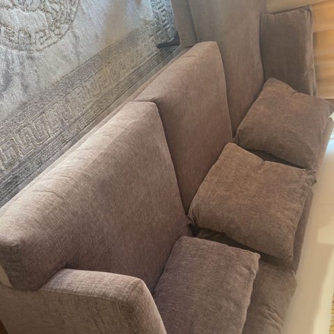 Två soffor till salu, klädda i slitstarkt tyg.