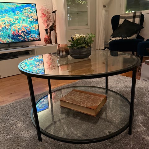 Soffbord set, 3 delar från Mio med svart glasskiva och silver metall ben!