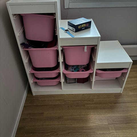 JOX barnmöbel/hylla i form av ett hus, vit färg. Hyllan har flera fack för förvaring och organisering av barnens leksaker eller böcker. Tillverkad i trämaterial och anpassad för barnrum.
