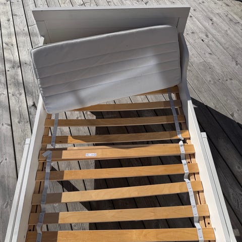 Inkl madrass för utdragssäng i fint skick. Använd med bäddmadrass på.