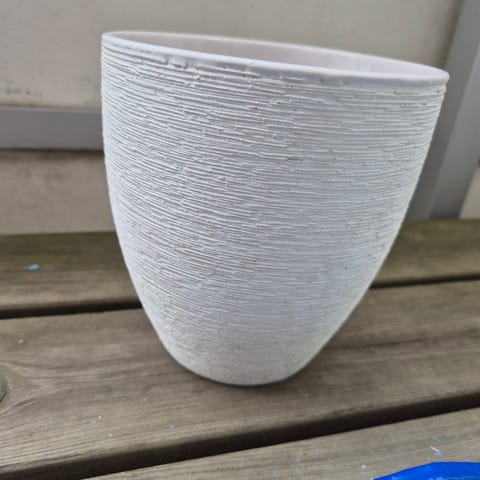 Krukan är i fint skick växten har blivit solblekt ( plast ) men är ändå fin. Höjd på krukan 49 cm