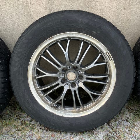 Fyra XC90 fälgar i ganska slitet skick, sitter dubbfria vinterdäck på med okej mönster.