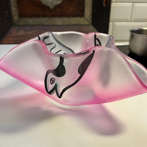 En fin handmålad Happy Going glasskål från Kosta Boda, design Ulrica Hydman Vallien.