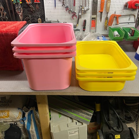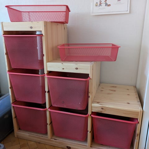 Säljer 2 st TROFAST leksaksförvaring från IKEA med gråa meshbackar.