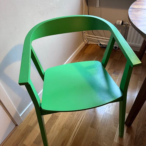 Snygg stol med skön form till kontoret/skrivbordet men också som avlastningsstol i ett badrum/hall. Säljes pga flytt. Finns på Hisingen nära Lundby Kyrka. Nypris 999kr