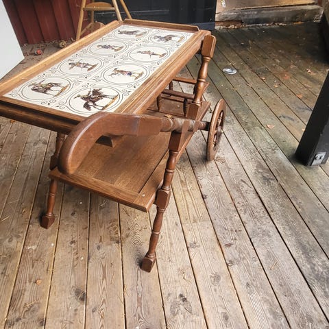 Träserveringsvagn med hjul i betsat trä