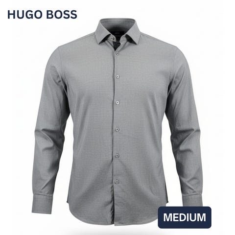 Hugo Boss Slim Fit Easy Iron skjorta i blå färg, storlek M för herrar. Tillverkad i material som underlättar strykning och ger en slimmad passform.