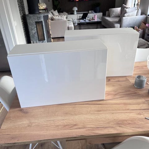 Bestå kan byggas på i oändlighet . Dessa är vita i högglans ,har även tv bänk i annan annons . Har totalt 5 skåp men denna annons gäller 4 st (om de ska skickas ) sen har jag 1 skåp i annan annons .