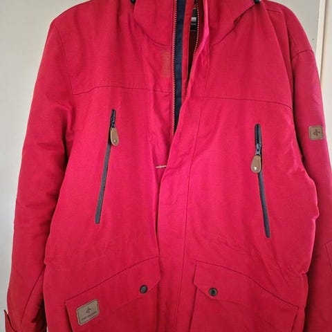 Mycket varm o rejäl jacka, snömuddar i ärmar, justerbar midja o nederkant. Sidofickor med dragkedja.