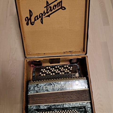 Fint Hagström Accordeon II säljes. Inköpt på Karlssons musik i Fjärås. Hårt case samt mjuk case med bärremmar ingår.