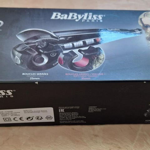 Okänt märke Locktång vit med konisk form. Inkluderar värmeskyddande handske och förvaringspåse i satinliknande material. Avsedd för att skapa lockar och vågor i håret.