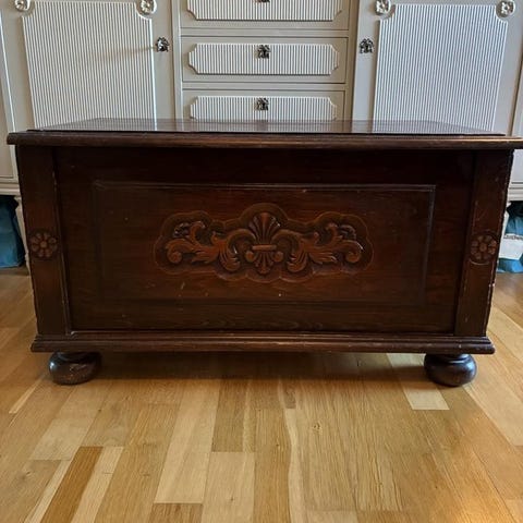 Äldre kista med välvt lock. Perfekt för förvaring. Nyckel finns ej.