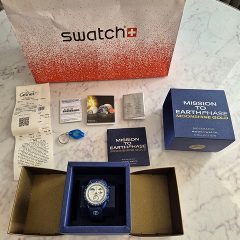 Helt ny MoonSwatch Mission to Earthphase säljes på grund av att jag inte har någon användning av den. Den köptes i Swatch-butiken på Schiphol flygplats i Amsterdam. Den har aldrig använts och därav i fantastiskt skick. Denna Limited edition upplaga visar både månen från jordens perspektiv men även jorden från månens perspektiv! Jag kan mötas upp i både Göteborg och Karlstad, eller så kan den skickas om det passar bäst!