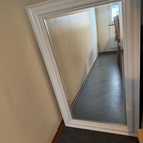 Helkroppsspel med vit ram. Säljs på grund av flytt. 149 cm x 49 cm