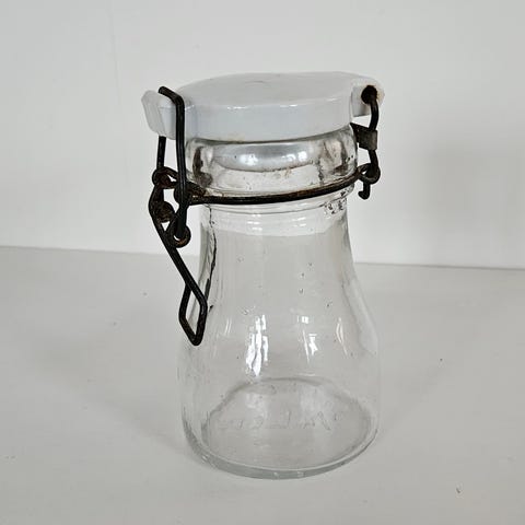 8 glasburkar med patentlock av porslin. 1/4 liter.