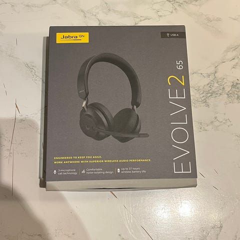 Jabra hörlurar (Jabra 85 Evolve2) over-ear i svart färg. Designade för att täcka hela örat med vadderade öronkuddar och justerbar huvudbygel för komfort. Utrustade med inbyggd mikrofon för samtal. Trådlös anslutning med kontroller på hörlurarna för enkel hantering av ljud och samtal.