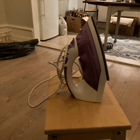 Rowenta Steamglide Strykjärn i vitt och gult. Elektriskt strykjärn med justerbar temperaturkontroll och ångfunktion. Designad för effektiv strykning av olika typer av textilier.
