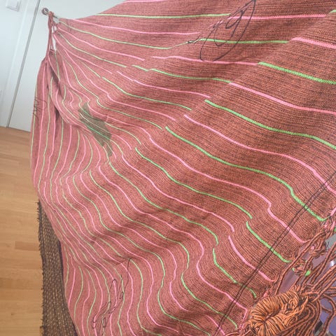 Gedigen material i 100% bomull från Manaus i Brasilien. Finns i olika färger Längd: 3.30 m. Ögla-ögla. Liggdel: 2.20 m. Bredd: 1.40 m