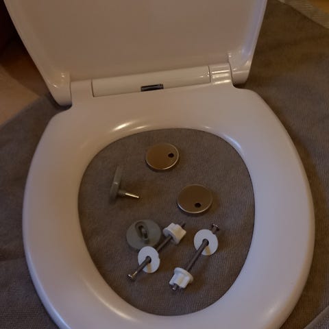 Hink medföljer som passar i toalettstolsförhöjningen när den används som fristående toalett