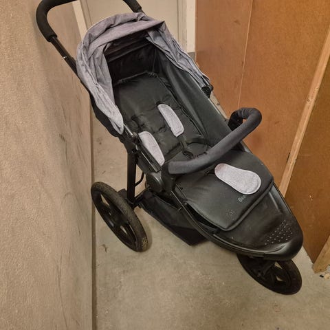 Baby Jogger Summit X3 barnvagn i svart färg. Modellen har tre hjul för bättre manövrerbarhet och en justerbar handbroms. Passar för barn och är tillverkad av slitstarkt material. Utrustad med en rymlig förvaringskorg under sittdelen. En spjälsäng för spädbarn finns också tillgänglig. Denna barnvagn har alla tillbehör. Priset för en ny barnvagn är över 5500 kr.