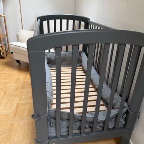 Det ingår lite sovsaker samt ett gallerskydd i mindre bra skick.