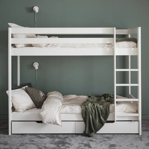 Nora Loftsäng i vitt trä med bäddmått 90x200 cm. Inklusive ribbotten.
