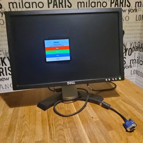 Acer 20-tums bildskärm med bred skärmstorlek. Skärmen har anslutningar för VGA och strömkabel. Passar för användning som datorskärm för arbete eller underhållning.