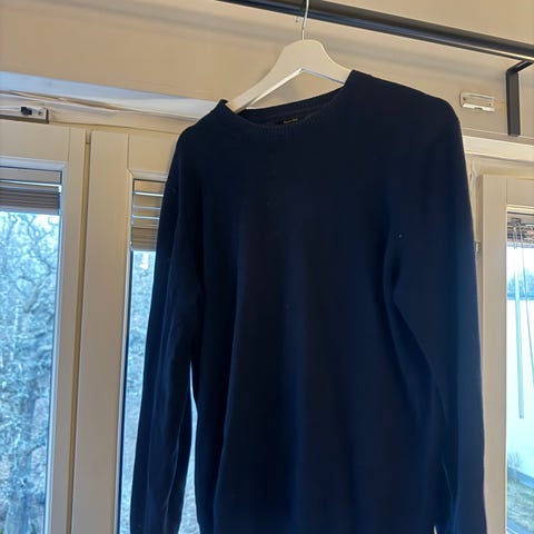 Marinblå v-ringad tröja i ull i strl S från Hugo Boss