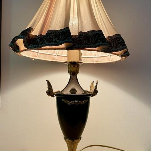 Här säljs en unik bordslampa med en vacker och dekorativ Rottweiler-figur. Lampan är utrustad med en klassisk lampskärm som sprider ett mjukt och behagligt ljus – idealisk för både sovrum och vardagsrum.
