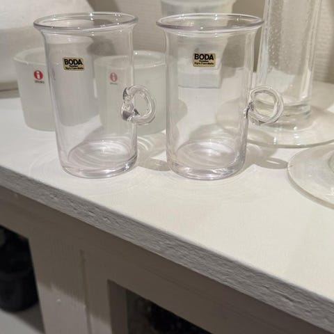 Muggarna är gjorda i handgjort borosilikatglas med dubbelvägg som håller drycken varm längre – samtidigt som utsidan förblir sval att hålla i.