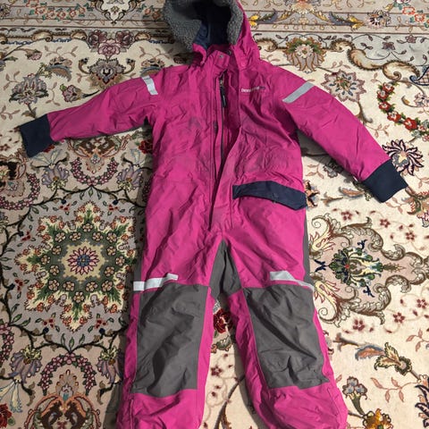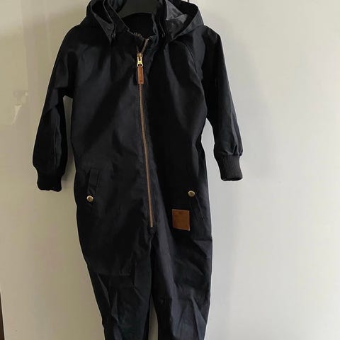Mini Rodini barnoverall i storlek 98, svart färg. Overallen är unisex och har en rutig insida med avtagbar huva som är kantad med fuskpäls. Material och detaljer är anpassade för att ge skydd och komfort vid kallt väder. Ordentligt varm och vinterfodrad. Muddar i gott skick som omsluter handlederna och håller kall luft borta. Gummiband som håller skor/stövlar på plats. Overallen har två fickor framtill med dragkedja och reflexer på ärmar och ben. Det finns en litet hål på baksidan av det ena benet i höjd med vaden (vänligen se bild).