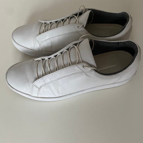 Vagabond sneakers i storlek 37, vita med orange detaljer. Tillverkade i material som ger komfort och passform för vardagligt bruk.
