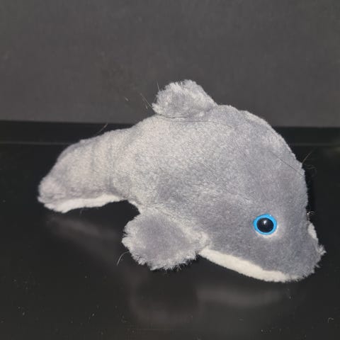 Aldrig lekt med eller använts som gosedjur, har varit en del av en samling med mjukisdjur som har stått i ett skåp