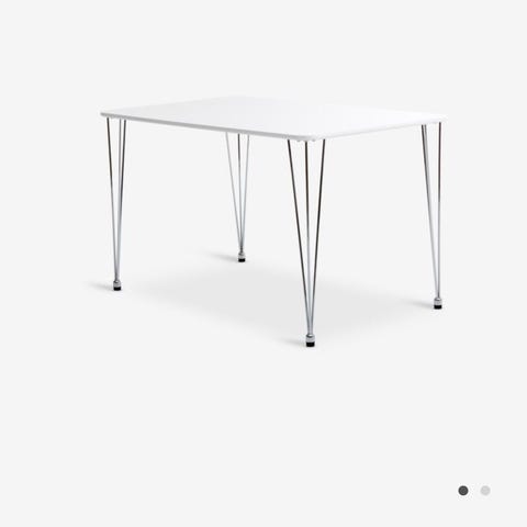 IKEA runt bord med en diameter på 103 cm och höjd på 75 cm. Bordet är vitt och har en stabil fot som mäter 60 cm i diameter. Passar för olika rum och användningsområden.