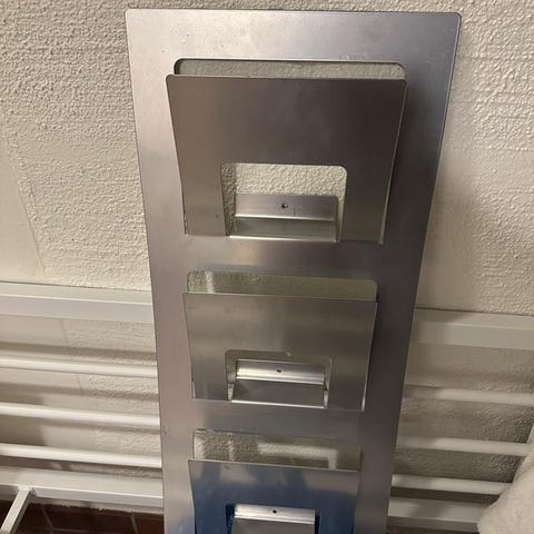 Tidsskriftsställ i björkplywood med måtten ca 50 x 50 x 50 cm.